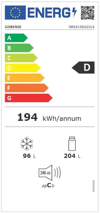 Kombinovaná chladnička Gorenje NRK619DA2XL4 v nerezovém provedení NoFrost Plus v energetické třídě D má 204 litrů chladicího a 96 litrů mrazicího prostoru. Chladnička má inteligentní řídicí systém AdaptTech, zásuvku CrispZone s regulátorem vlhkosti, funkci FastFreeze, NoFrost Plus, systém proudění vzduchu MultiFlow 360° a úsporný režim EcoMode.