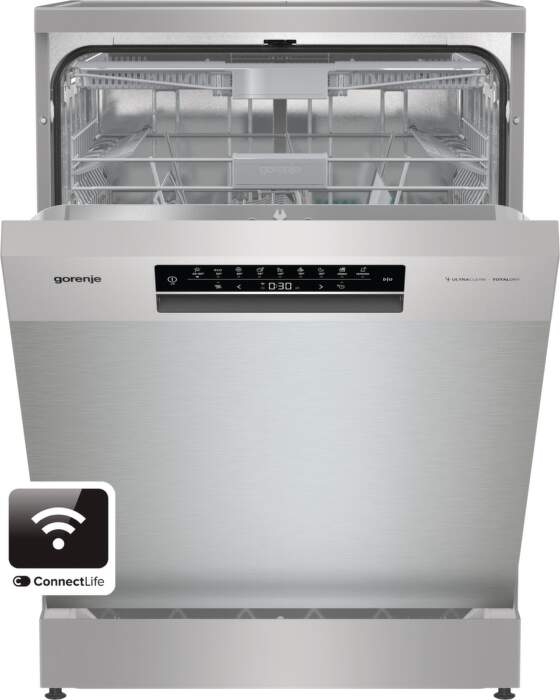 Chytrá myčka nádobí Gorenje GS673C60X ve stříbrné barvě s invertorovým motorem PowerDrive. Ovládání je dotykové a nabízí také možnost ovládat myčku přes wifi. Kapacita praní je až 16 sad nádobí. Na výběr je 7 programů. Vybavena ochranou Total AquaStop a funkcí TotalDry - automatické otevření dvířek na konci pracího programu. Hladina hluku při mytí je 42 dB.