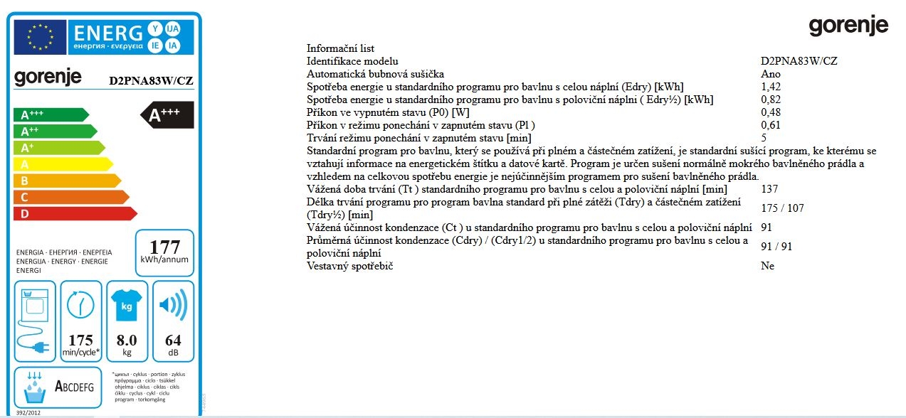 Sušička Gorenje D2PNA83W/CZ