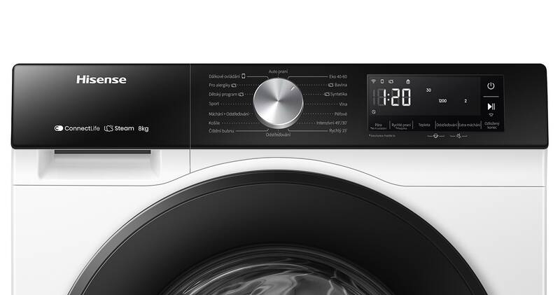 Předem plněná pračka Hisense WF3S8043BW nabízí skvělou péči o vaše prádlo díky výběru ze 12 programů. Tento volně stojící model o šířce 60 cm vypere až 8 kg prádla. Spotřebič pohání výkonný a zároveň tichý invertorový motor PowerDrive, který zvyšuje účinnost, úsporu energie a je zárukou delší životnosti pračky. Se spotřebou 47 kWh elektrické energie na 100 cyklů patří do nejúspornější energetické skupiny A. Jeden prací cyklus spotřebuje pouze 36 litrů vody, takže vám z dlouhodobého hlediska ušetří spoustu peněz. Kromě praktických programů dále nabízí funkci páry pro dezinfekci prádla a redukci pomačkání, kterou zajisté oceníte, máte-li doma alergiky nebo malé děti, protože tato funkce dokáže odstranit alergeny a nežádoucí mikroby. Pomocí funkce DelayEnd si můžete dopředu nastavit čas ukončení praní. Pračka má funkci automatického rozpoznání prádla, se kterým si sama upraví cyklus praní přímo na míru bez nutnosti ručního nastavení. Prací cyklus je možný kdykoliv přerušit a přidat zapomenuté kousky prádla. Jednoduché ovládání zajistí otočný knoflík a přehledný LED displej. Nechybí zde ani samočistící program SterilTub, vestavná Wi-Fi s ConnectLife aplikací či rychlý program praní.