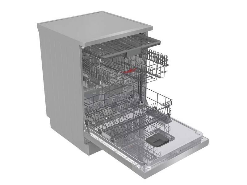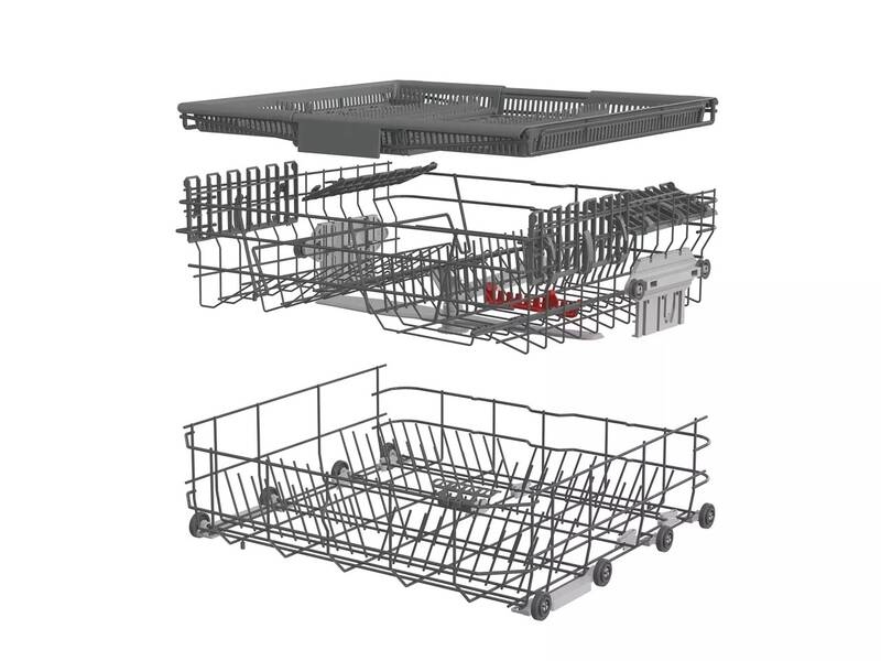 K uložení nádobí budete mít k dispozici 3 úložné koše, včetně jedné příborové zásuvky. Myčka je opatřena systémem MultiClack pro nastavení výšky horního koše. Kromě toho se ve spodním koši nacházejí skládací držáky talířů. Díky tomu se do myčky vejdou i větší kousky nádobí, jako jsou hrnce či pekáče. Veškeré požadované nastavení si zvolíte na dotykovém ovládacím panelu. Na výběr dostanete ze 6 programů (Intenzivní, ECO; Hygiena, Automatický, Křišťálové sklo, 1h mytí) a 5 teplot mytí (70, 65, 60, 55, 40 °C). Nelze opomenout ani praktické funkce, jako jsou Odložený start, Tablety 3 V 1 či funkce RychléMytí, která umožní zkrácení programů. O snadnější údržbu se postará samočisticí filtr.