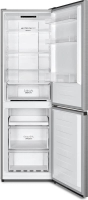 Poohlížíte se po elegantní ledničce do své domácnosti? V tom případě by vás mohla zaujmout kombinovaná lednička Gorenje NRK619EPXL4 v Inoxlook provedení. Tato volně stojící chladnička se pyšní celkovým objemem 304 l, jenž se dělí na chladicí (207 l) a mrazicí (97 l) část. O rovnoměrnou distribuci chladného vzduchu do všech polic se postará ventilační systém Multiflow 360°. Chladnička dále disponuje praktickou beznámrazovou technologií NoFrost Plus, která zabrání hromadění námrazy na potravinách i na stěnách spotřebiče. Díky úspornému LED osvětlení ze stropu si navíc posvítíte na uložené potraviny.