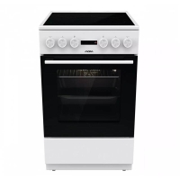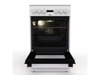 sporák se sklokeramickou deskou • energetická třída A • objem 62 l • horkovzdušná trouba s kruhovým topným tělesem • program pizza • program pro hotová a mražená jídla • funkce EcoClean – pro snadnější údržbu • víceúrovňové pečení • bezpečnostní prvky: ukazatel zbytkového tepla, chladná dvířka trouby • příslušenství: pekáč, rošt • V × Š × H: 85 × 50 × 59,4 cm
