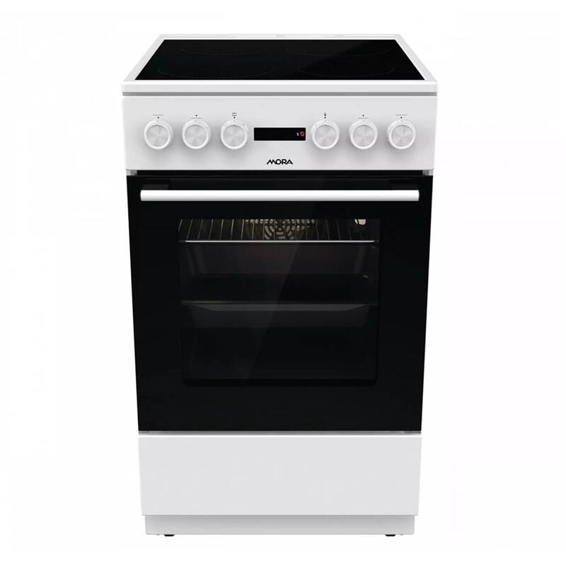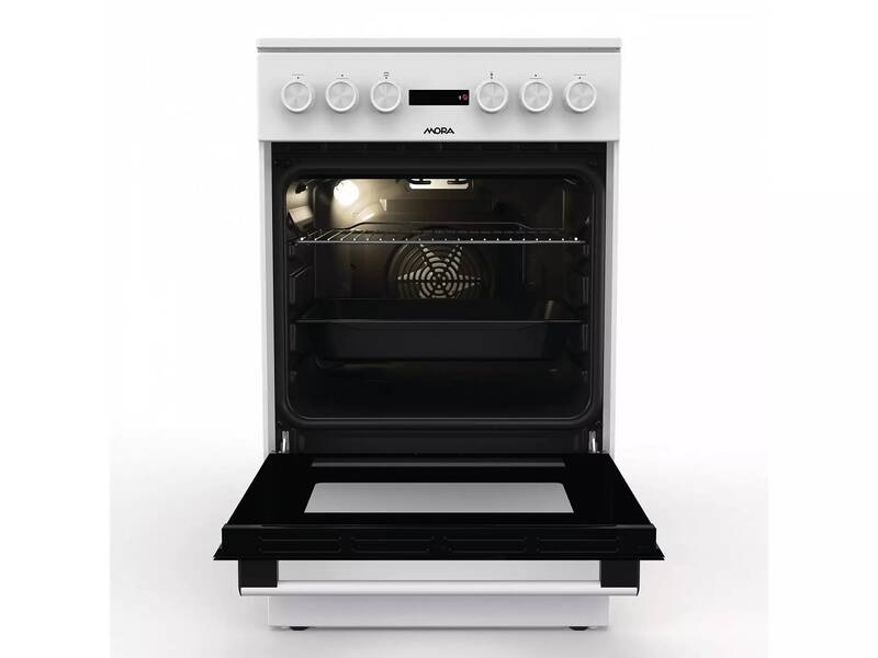Elektrický sporák Mora v bílém provedení s označením C 5242 CW je spojuje funkce sklokeramické varné desky a multifunkční trouby a svou spotřebou spadá do energeticky velice úsporné třídy A. Varná deska je vyrobena z tepelně odolného materiálu, který vydrží až 100 kg zátěže. Navíc je díky svému zcela rovnému tvaru velice snadno omyvatelný. Deska je vybavena o ukazatel zbytkového tepla – ten světelně signalizuje, že je deska stále horká a nebezpečná na dotek, a tím upozorňuje na možnost popálení nebo vzniku jiných nehod. Multifunkční trouba nabízí celkem 8 programů s uživateli dovoluje přesnou regulaci teploty od 50–270 °C. Velká variabilita vám umožní připravovat jídla rychle a šetrně tak, aby si veškeré suroviny dokázaly zachovat maximum vitamínů a stopových prvků. Mezi funkcemi trouby najdete například horní a dolní topné těleso, kruhové těleso s ventilátorem nebo program Pizza. Díky horkovzdušnému pečení budete moci péct hned několik různých pokrmů najednou – perfektní cirkulace vzduchu zajistí, že se nebudou mísit jejich chutě ani vůně. Průběh pečení lze sledovat skrze velké průzorové okno a pro dokonalý přehled je vnitřek trouby vybaven navíc o kvalitní osvětlení. Ve spodní části sporáku se nachází také praktický úložný prostor, do kterého lze snadno usnadnit příslušenství, včetně roštu a MAXI pekáče XXL s objemem 8 l, které jsou součástí balení.