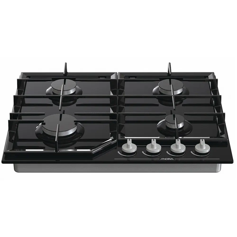Plynová varná deska VDP 645GB6 od značky MORA je umístěna na černém tvrzeném skle. Disponuje 4 plynovými hořáky osazenými pojistkami STOP GAS, které automaticky zastaví přívod plynu, pokud hořák nečekaně zhasne. Může se tak náhodně stát v případě velkého průvanu nebo přetečení vařeného pokrmu. Díky integrovanému elektrickému zapalování v jednotlivých knoflících kohoutů už nemusíte shánět sirky ani zapalovače.